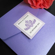The 'Chandos' pocketfold wedding invitation comes with a vintage design. Choose a 5x7in (178x128mm), DL (100x210mm) or square size (150x150mm) pocketfold, available in many different colourways. Add RSVP, or insert cards with gift list, directions or accommodation information for your guests. It is also available in a flat style, with 2 card layers, if you do not require a pocketfold.
